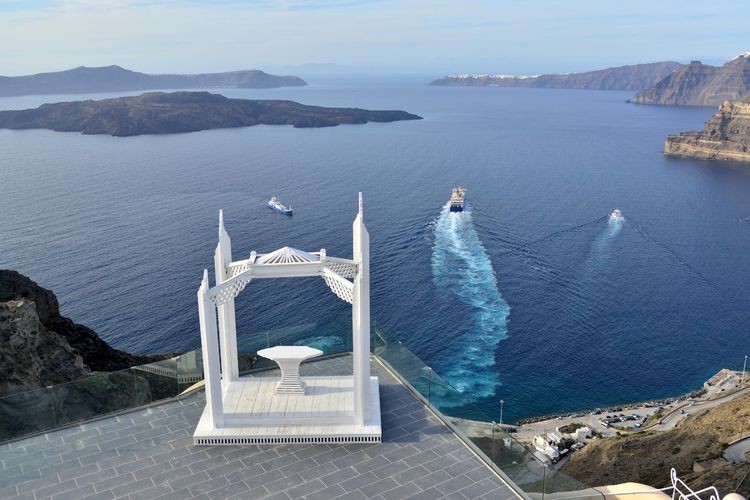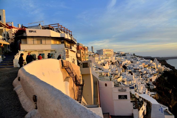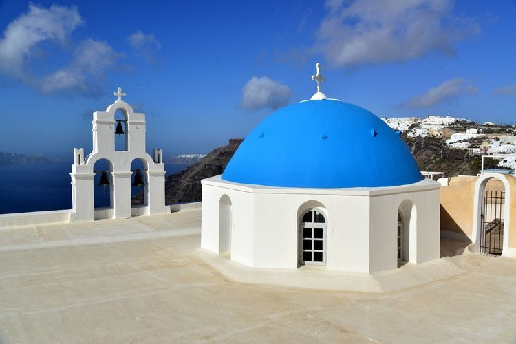 据说, 美国国家地理杂志的封面,刊登了一张蓝顶教堂照片,令圣托里尼知名度大增,从而成为世界著名的旅游胜地。网红打卡之地,合影一张算到此一游。据说旺季时在此拍照需排队。