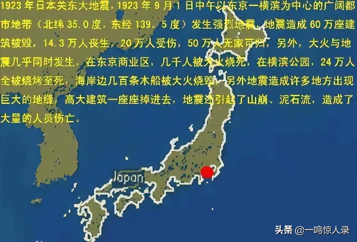 1923年9月1日,日本关东地区发生了7.9级强烈地震,地震灾区涵盖东京都市圈大部分范围,给日本造成了巨大灾难,伤亡约35万人,200多万人无家可归,总计造成财产损失约65亿日元。