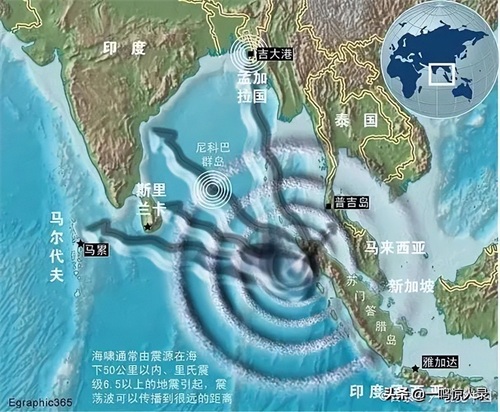 发生在2004年12月份的印度洋海啸,相信当时有许多人通过电视新闻有所了解。此次印度洋海啸来源于印度洋板块和亚欧板块交界处形成的一次强烈地震。