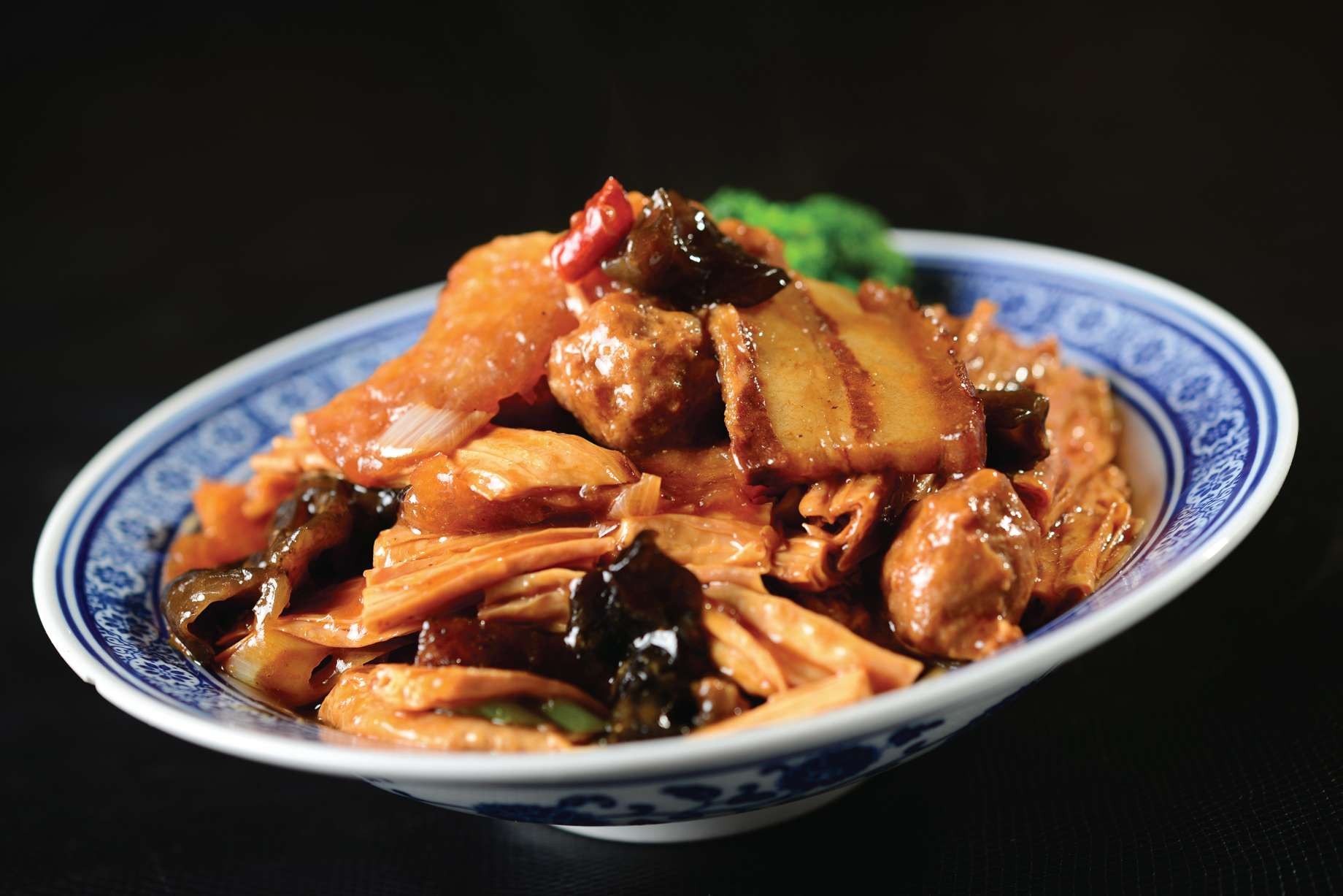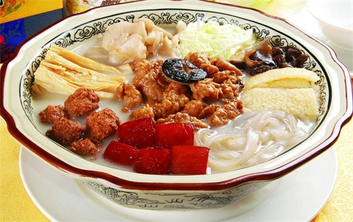 陕西烩菜,这道集多种食材于一锅的菜肴,是陕西人秋冬季节里不可或缺的美味。它的口味偏重,以浓郁的汤汁和丰富的食材为特点,简单方便却又不失营养与美味。烩菜中常见的食材有白菜、豆腐、粉条、丸子、肉片等,每一种食材都经过精心挑选与处理,以确保最终的口感与风味。烹饪时,先将肉类食材炖煮至软烂入味,再加入其他蔬菜一同慢炖,使得各种食材的鲜美相互融合,汤汁愈发浓郁。陕西烩菜不仅是一道家常菜,更是一种情感的寄托,每当寒风凛冽之时,一碗热腾腾的烩菜便能勾起人们对家的无限思念与温暖回忆。