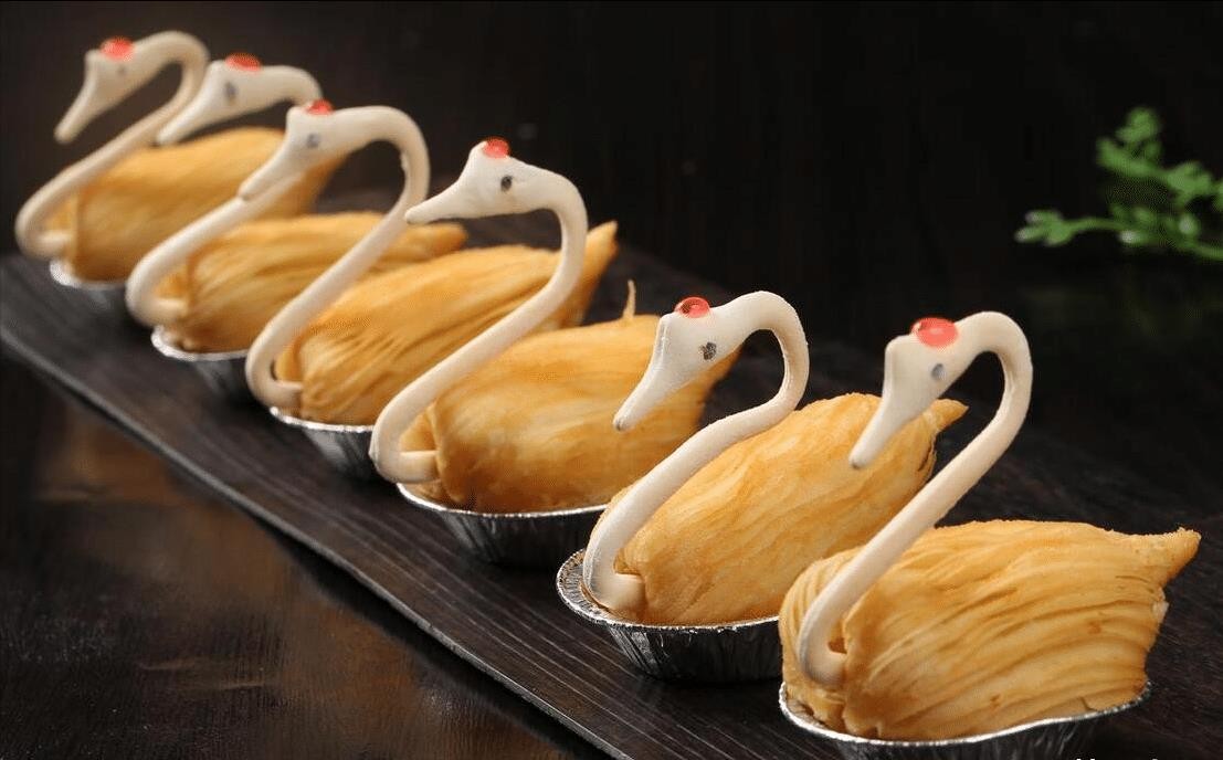 再来看看天鹅酥,一个外观美丽高贵的小吃。它的形状别致惊艳,仿佛一只迷人的天鹅。酥脆的外皮包裹着香甜的夹心,每一口咀嚼都是一种享受。酥皮与馅料在口中交融,带来香酥甜美的口感。不仅视觉上的享受,更让味蕾得到了满足。最后是象形枇杷,根据枇杷的原型制作而成。里面的枇杷馅心香甜可口,咬开之后可以看见里面的枇杷果肉。外形酥脆,仿佛黄澄澄的枇杷果实。