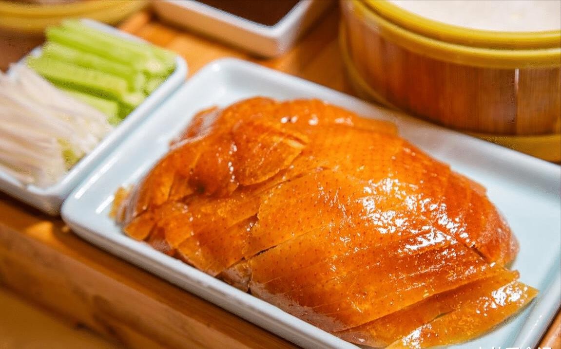 接下来,让我们尝尝沙葱牛肉。沙葱是一种生长在高寒地区的草本植物,它的味道与常见的韭菜略有不同。用来烹饪牛肉,能够掩盖牛肉的膻味,使牛肉更加鲜香可口。沙葱牛肉不仅满足了人们对于美味的追求,也展现了中国独特的食材和烹饪文化。当谈到国宴,北京烤鸭绝对是一个不可或缺的选项。它是中国的传统美食,也是代表中国的鲜明符号之一。鸭皮酥脆,肉质鲜嫩,香气扑鼻,让人无法抵挡。