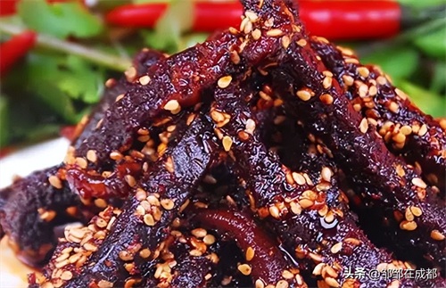 通川灯影牛肉,顾名思义,其肉片之薄,仿佛能在灯光下透出光影,宛如皮影戏中的幕布,因此得名。这款牛肉的选料和工艺都极为讲究,只选取牛腿腱肉,去除筋膜后,用长刀切成如纸般薄的肉片。配以甘草、丁香、草果等十余种天然香料,经过腌制和烘焙,最终呈现出色泽红亮、麻辣鲜脆的美味。每一片灯影牛肉都薄如蝉翼,入口即化,香脆可口,让人回味无穷。其独特的风味和精湛的制作技艺,赢得了广大食客的喜爱。在2007年,通川灯影牛肉的传统加工技艺更是被列入第一批四川省非物质文化遗产名录,成为川味美食中的瑰宝。