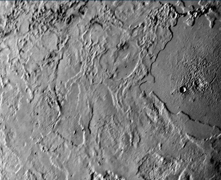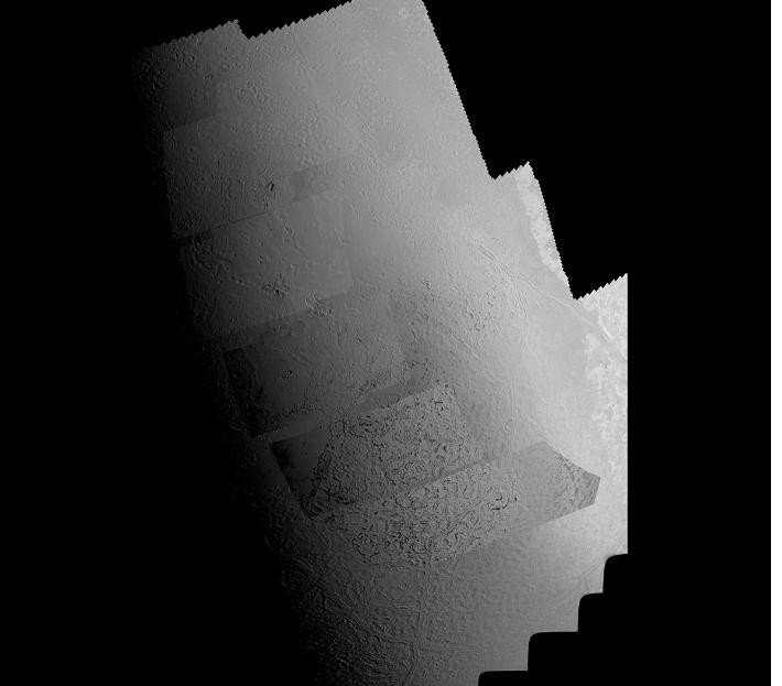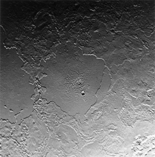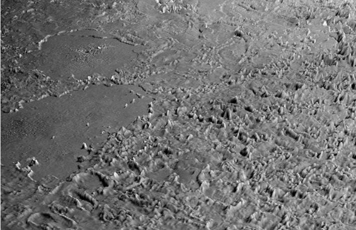 图解:这张海王星卫星海卫一的火山平原照片是20年前由旅行者2号飞船在1989年8月的一次飞越中获得的地形图。