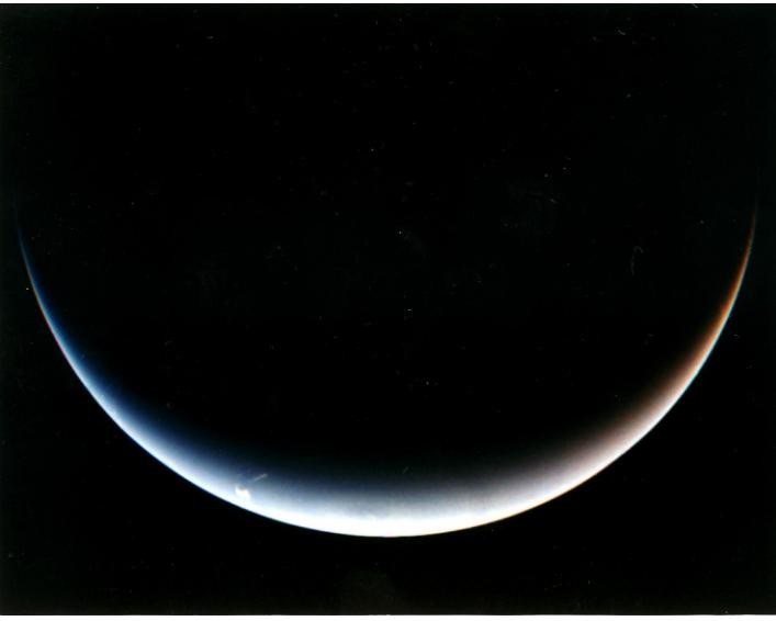图解:这张照片是由旅行者2号飞船在1989年7月3日传回的,当时它距离海王星7600万公里(4700万英里)。