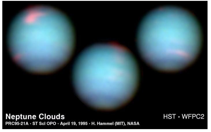 图解:这些从哈勃望远镜视角拍摄的蓝绿色海王星提供了三种天气变化状况的快照。