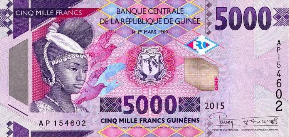 第九名,几内亚法郎。这是非洲西岸几内亚共和国发行的货币。听名字就知道这个国家和法国渊源很深,属于前法国殖民地。和不少非洲国家一样,几内亚虽然矿产、森林等资源丰富,但却是联合国公布的最不发达的国家之一,如今几内亚法郎纸币的面值最小为25最大则达到了20000,不过按照汇率如今一万几内亚法郎大概只能兑换八块多一点人民币,妥妥的含着金钥匙出生的穷人代表。