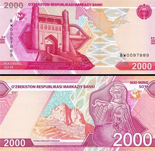 第八名,乌兹别克斯坦的官方货币索姆。1991年苏联解体后乌兹别克斯坦宣布脱离苏联独立,第二年就发行了新货币索姆。乌兹别克斯坦是十分典型的中亚内陆国家,同时也是全球唯二的双重内陆国,意思就是不仅他自己,包括他的所有邻国都是内陆国。索姆的最小面值是1000,最大则达到了10万,如今一万乌兹别克斯坦索姆大概可以兑换人民币六块多。