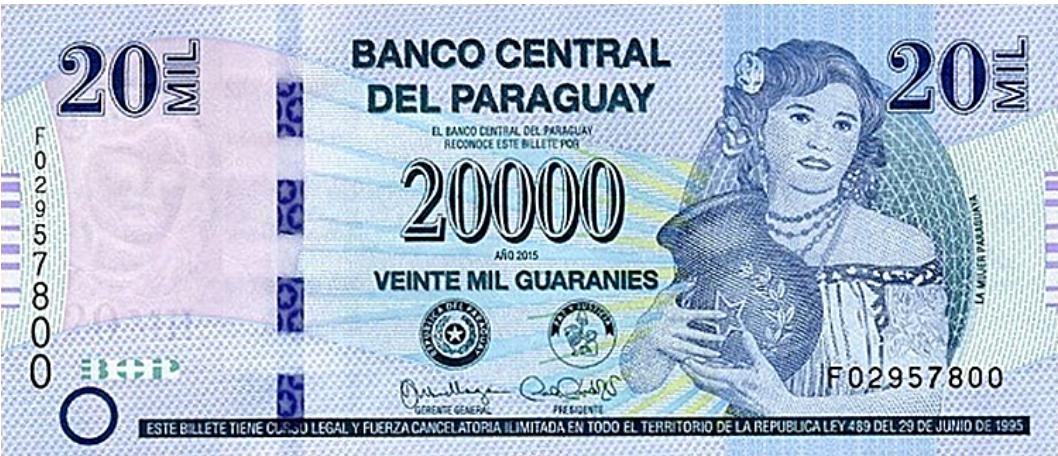 第十名,巴拉圭的瓜拉尼。巴拉圭是一个南美洲国家,紧挨着巴西和阿根廷,大概和我们云南差不多大小,但是就这么个地方只有区区700万人口,而且人口结构异常的年轻,只有28岁,也算是一个奇观了。瓜拉尼纸币最小的面值200,最大的达到了惊人的十万,但是按照当前汇率,一万瓜拉尼只能兑换九块多人民币。