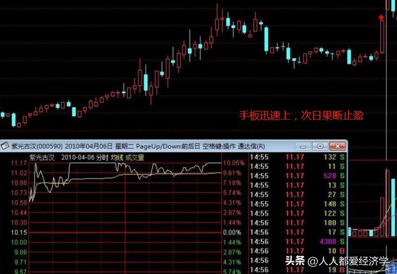 3.压板:这是游资用大单买入后,跟风排板单不断减少,有可能炸板的风险时,在后方用其他资金加大排板,从而引导抛压盘和跟风盘,不让炸板发生的技巧。这里不讨论这个了,这个和游资审时度势,主观意识地想打造题材效应密不可分,我们暂时不需要学,了解就行了。
