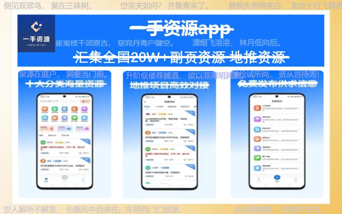 一手资源,一个汇聚了超过20w+个地推拉新项目的资源对接平台,为推广者提供了一个资源分类明晰的环境,使他们能更便捷地匹配到合适的项目。此外,平台聚集了众多fu务提供商,他们所提供的项目均为地推人员所渴望的优质app拉新推广,确立了一手资源作为app拉新推广一选接单平台的地位。