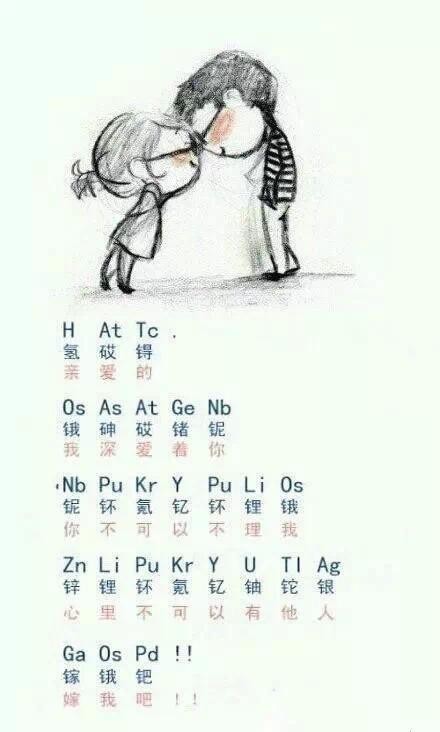 点评:既有创意,又具才气。这得元素周期表背熟多少遍,才有如此功力。