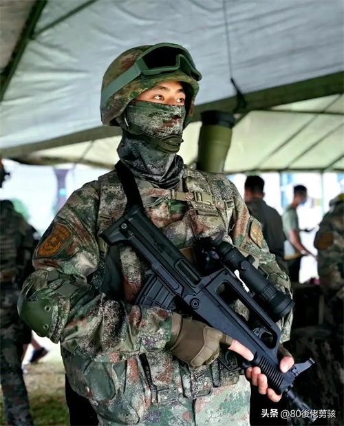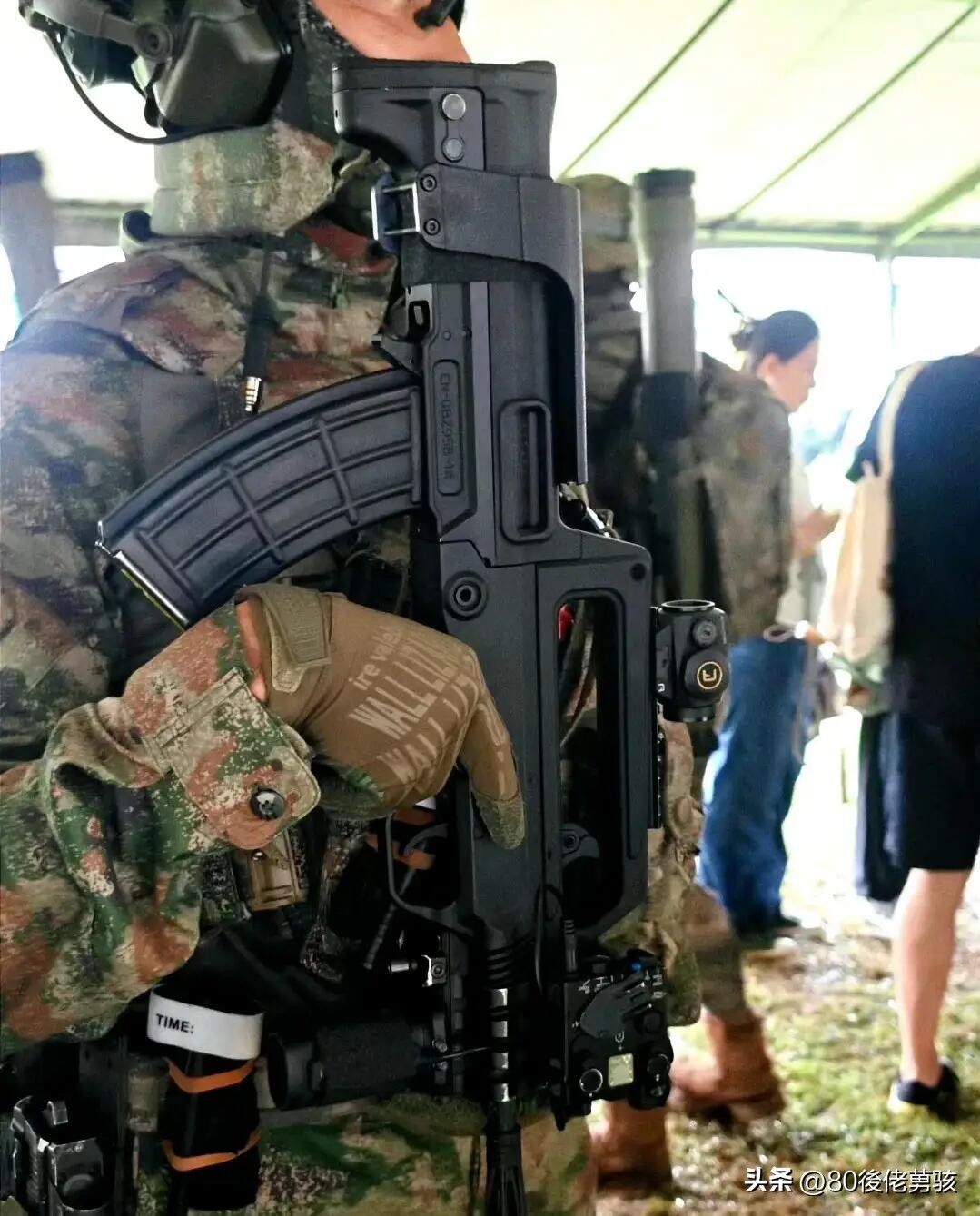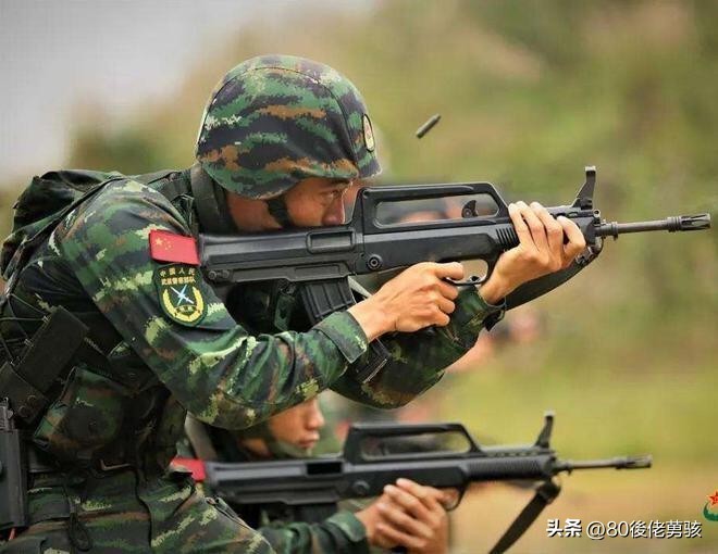 95式5.8毫米突击步枪也能做到枪口朝下倒立,且十分平稳