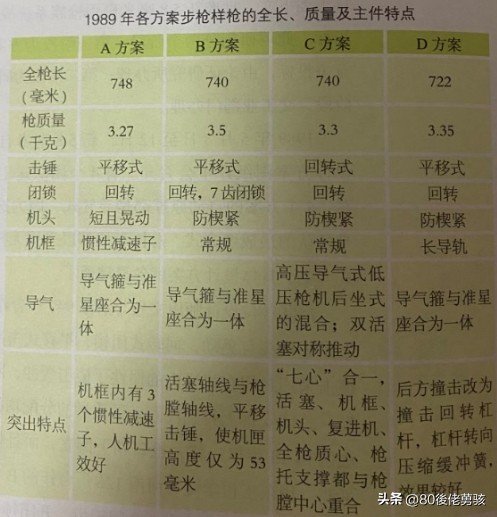 1989年5月8日至12日,新5.8毫米自动步枪设计方案图纸评审会召开,其中有4个设计团队推出的均是以导气式自动原理、采用无托结构形式的总体布局的自动步枪设计方案。