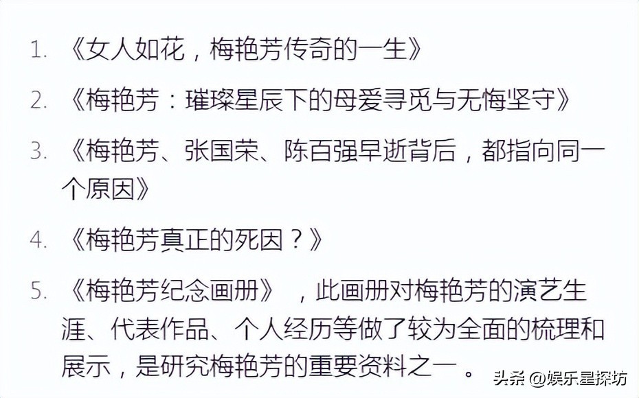 梅艳芳的一生很短暂但又非常璀璨,她的那些选择虽然存在着遗憾,不过呢也体现出了她的勇敢和坚守。她的这个故事在提醒着我们,一定要珍惜生命,关心健康;这个时候呢,也应该去掉对单身女性的那种偏见,尊重每一个人的人生选择。