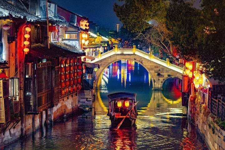 周庄古镇位于江苏苏州昆山市境内,始建于北宋年间(公元1086年),有着“中国第一水乡”的美誉。这里保存有14座元、明、清古石桥和众多明清古建筑群,是中国首批历史文化名镇之一。周庄古镇以其独特的水乡风情和丰富的历史文化而备受游客喜爱。