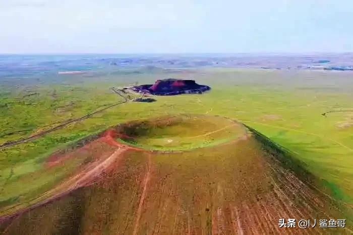 三、察哈尔火山群地质园,位于乌兰察布市察哈尔右翼后旗乌兰哈达苏木境内,集聚着草原火山群、熔岩地貌及堰塞湖景观,被誉为天然的“火山博物馆”。整个公园有火山20多座,火山口留存得很完整,从上往下看火山底是岩浆冷却后的样子,一颗颗乌黑石头,火山喷发后自然形成的小矿石形状的都不一样,很多形状各异的小矿石,撒落在周围。3号火山,有栈道台阶,小盆友和老人攀爬更容易,其他火山都没有栈道,穿上租的宇航服在这里拍照特别出片!园区内的天鹅湖和白音淖尔湖,在傍晚时分,湖面倒映着天空中的晚霞,湖水荡漾泛着粼粼金光,微波卷岸,镶了一道惹眼的金框,让人心旷神怡。