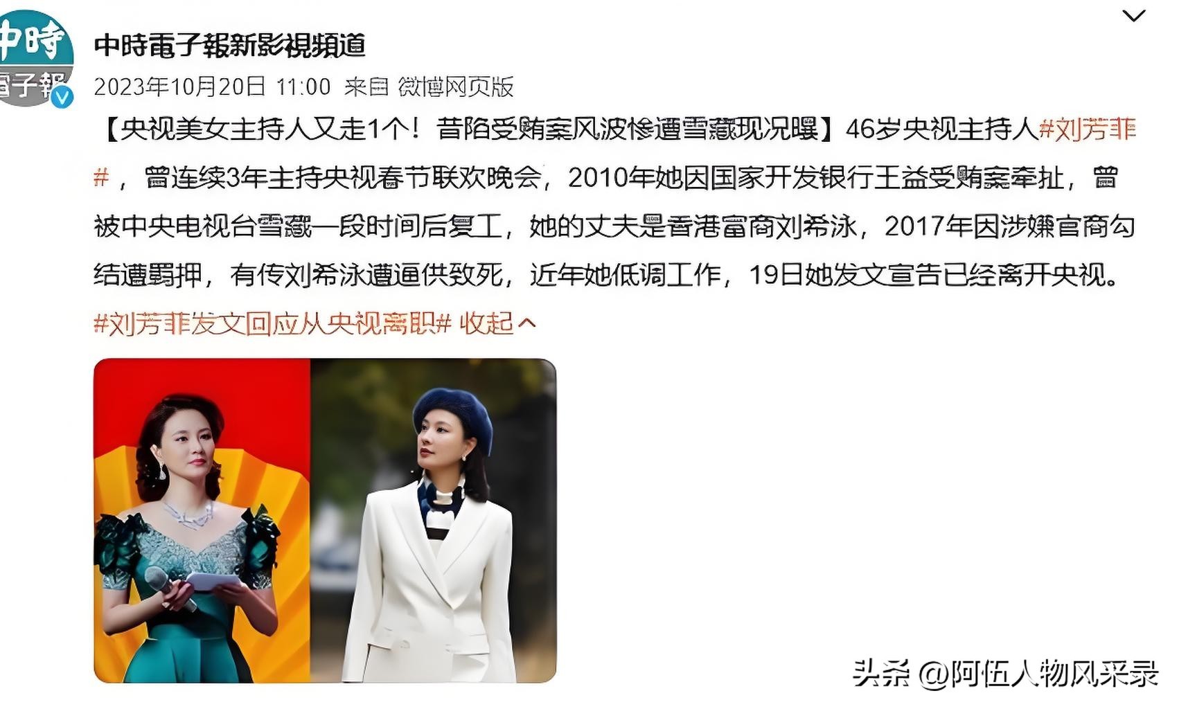 这也成为了刘芳菲的遗憾。两次悲剧的婚姻,她的生活也受到很大的影响, 也许是为了换一种生活方式, 也或是释放央视的工作压力,于是开始了重新规划人生, 2023年悄然从央视离职.