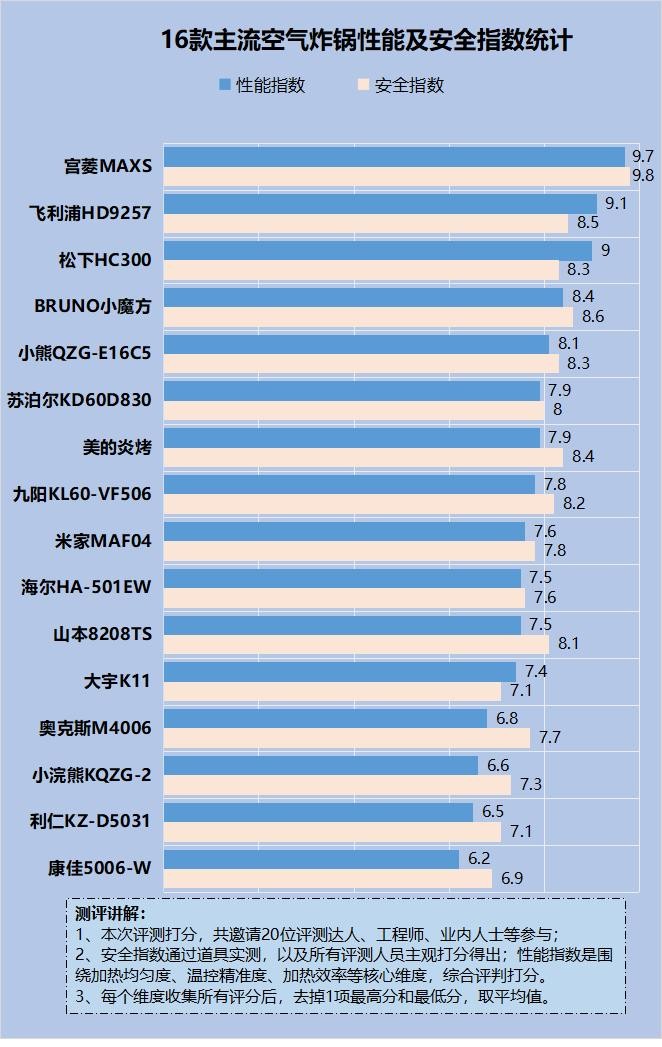 空气炸锅有什么危害?一款优质的空气炸锅安全无毒,但在选购产品时要谨慎,下图是权威机构整理的一份关于空气炸锅性能与安全性的对比图。