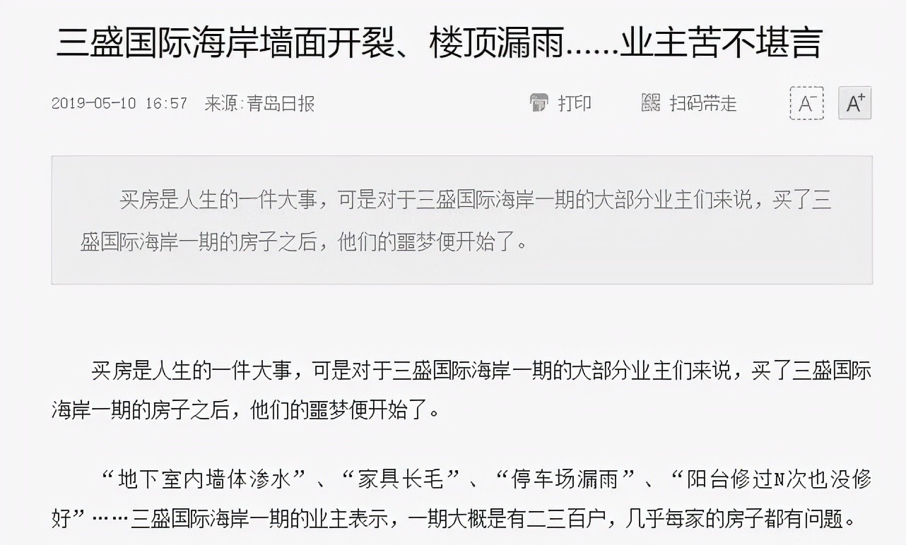 你说郊区盘卖不动也就算了,问题是鲁商在市南、崂山建的豪宅产品,那质量也是惨不忍睹,这其中以鲁商蓝岸丽舍最具代表性。青岛的各大报纸、生活在线也是多次报道,但是交房后的质量问题就是解决不了。