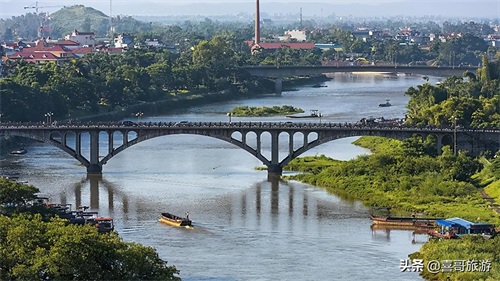 【中越友谊大桥】位于防城港市东兴市。中越友谊大桥横跨北仑河,是中越两国关系发展的象征和缩影,两国的国旗分别在大桥的两端矗立飘扬。