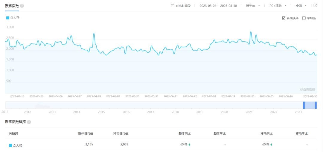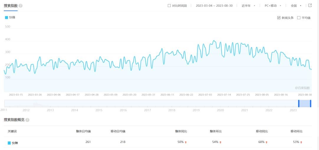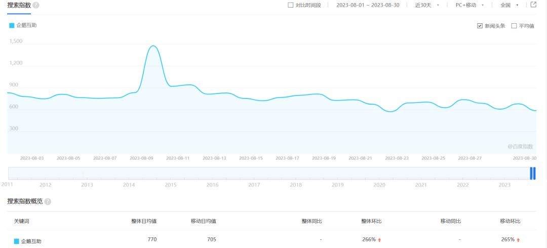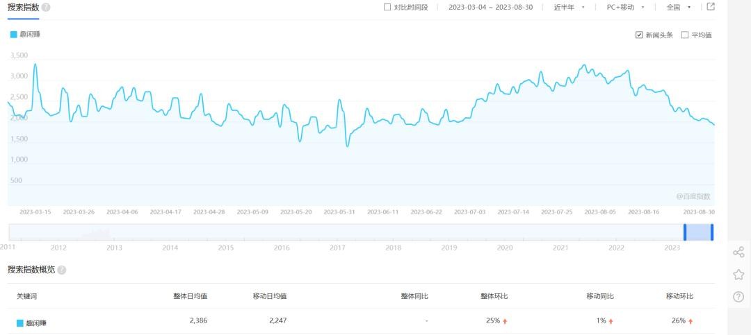 趣闲赚日均搜索量在2000-3000左右,搜索量一般是表示新增用户,表示每天有几千人的新用户通过搜索引擎去搜索趣闲赚。