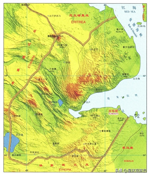 吉布提及周边国家地形图