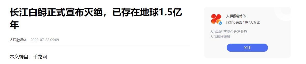 前言:2022年7月21日,原本是一个平常的日子,却镌刻着令人心痛的印记:世界自然保护联盟(IUCN)官方宣布,长江白鲟正式宣告灭绝。
