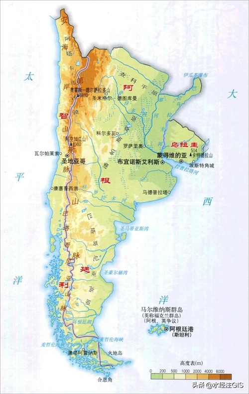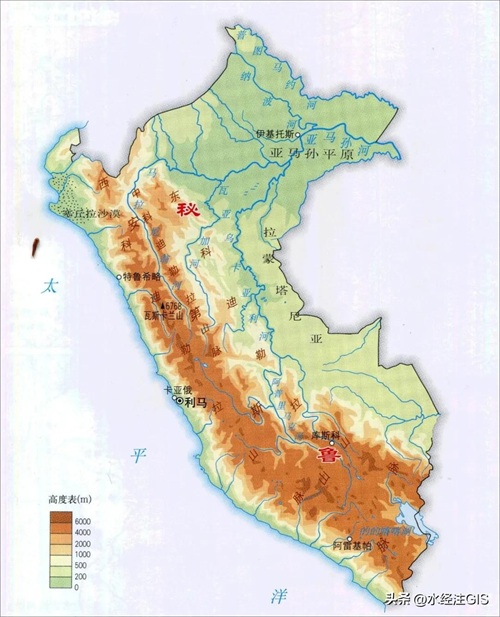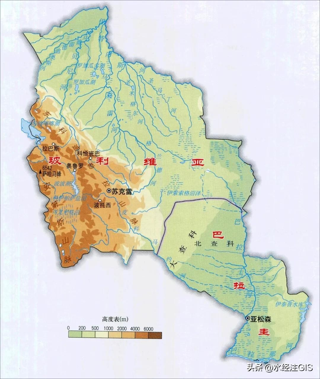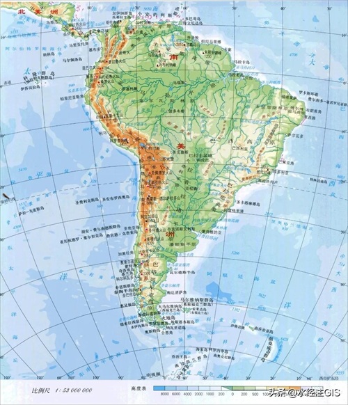 南美洲地形复杂,以安第斯山脉为脊骨,西高东低,平原与高原南北纵列分布。