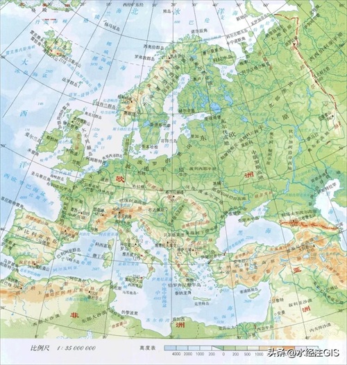 欧洲地形以平原为主,地势南北高、中部低,冰川地貌显著且山脉多分布于南北两侧。