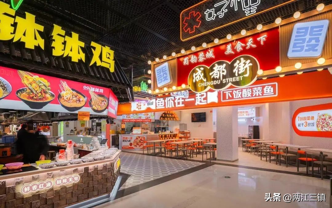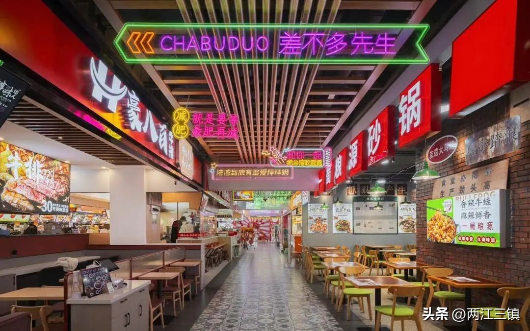 构筑场景,置入情景化、开放式就餐体验;通过岛铺外摆及天花造型,提升商业的整体商业氛围,强化商业属性。