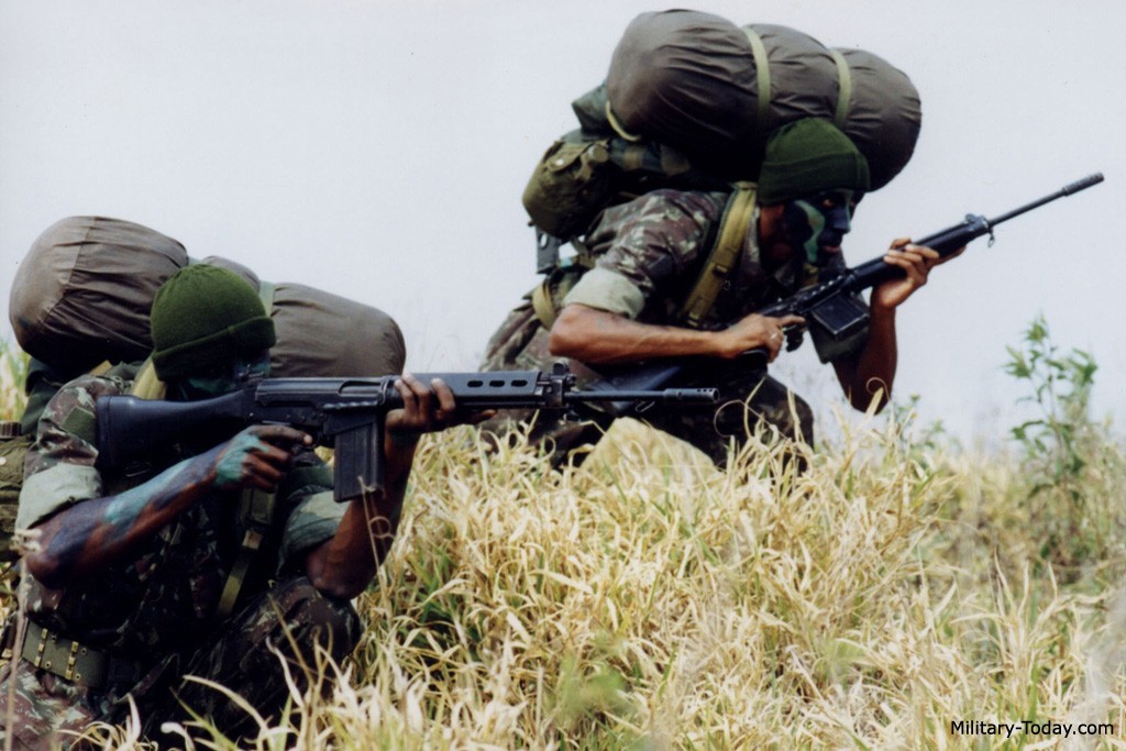 IMBEL MD97. FAL的一种巴西改型,从1997年起发放给巴西军队和警察部队,具有许多新的特点和配件。它是5.56毫米北约枪膛,并且有一个折叠枪托和用于安装40毫米榴弹发射器的位置。