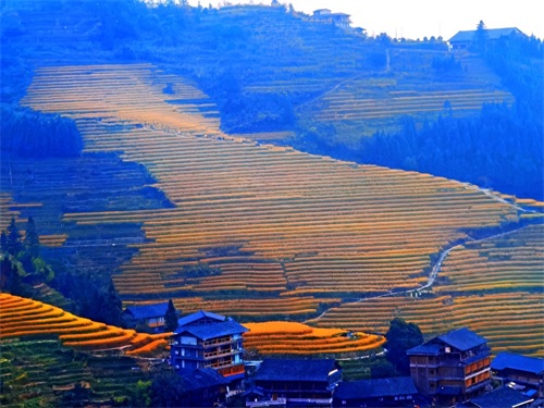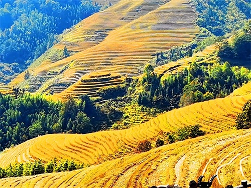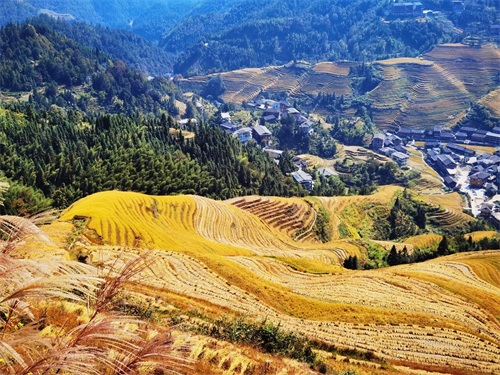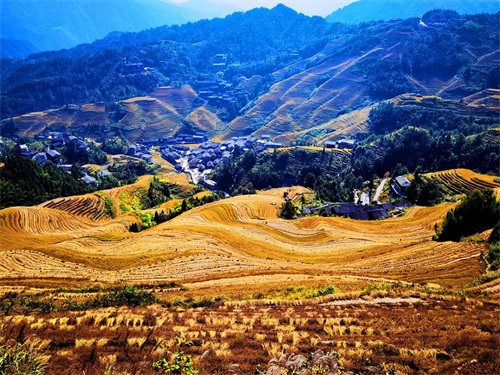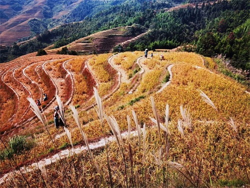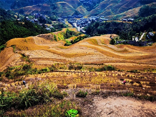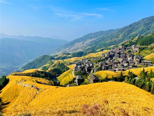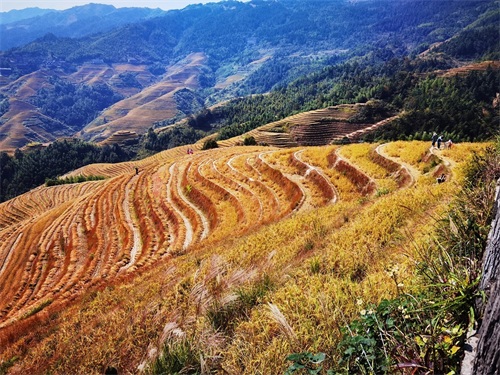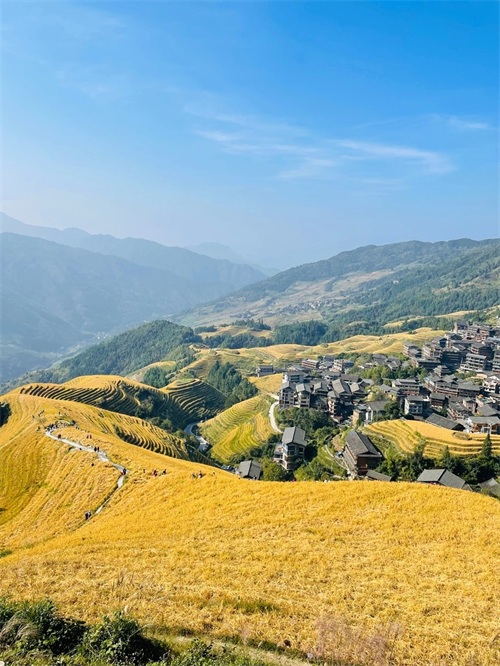 如今,龙脊梯田一年四季中外游客不断。金秋十月,更是络绎不绝,人山人海。