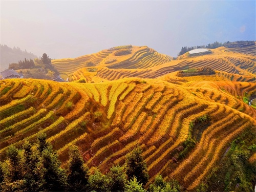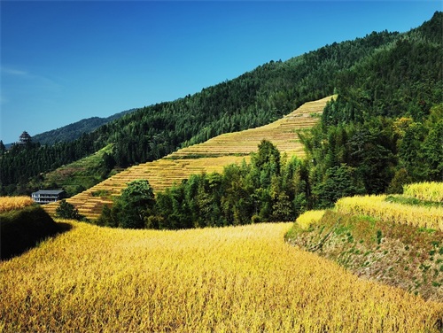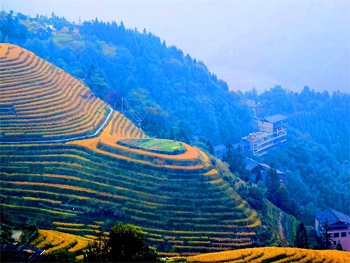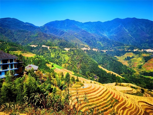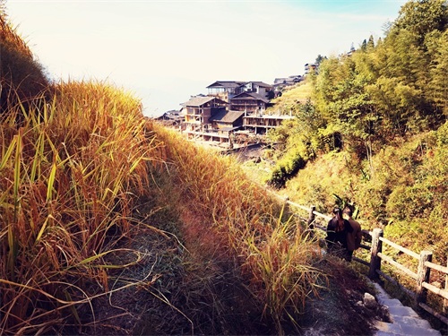龙脊景区,分为金坑,平安寨两个点。金坑大寨瑶村点,海拔901米,平安壮寨点,海拔786米。金秋十月,景区游人如织,车水马龙。金坑海拔高,雨雾天气的概率更高一点。金秋十月,天高气爽,是来龙脊的好季节。