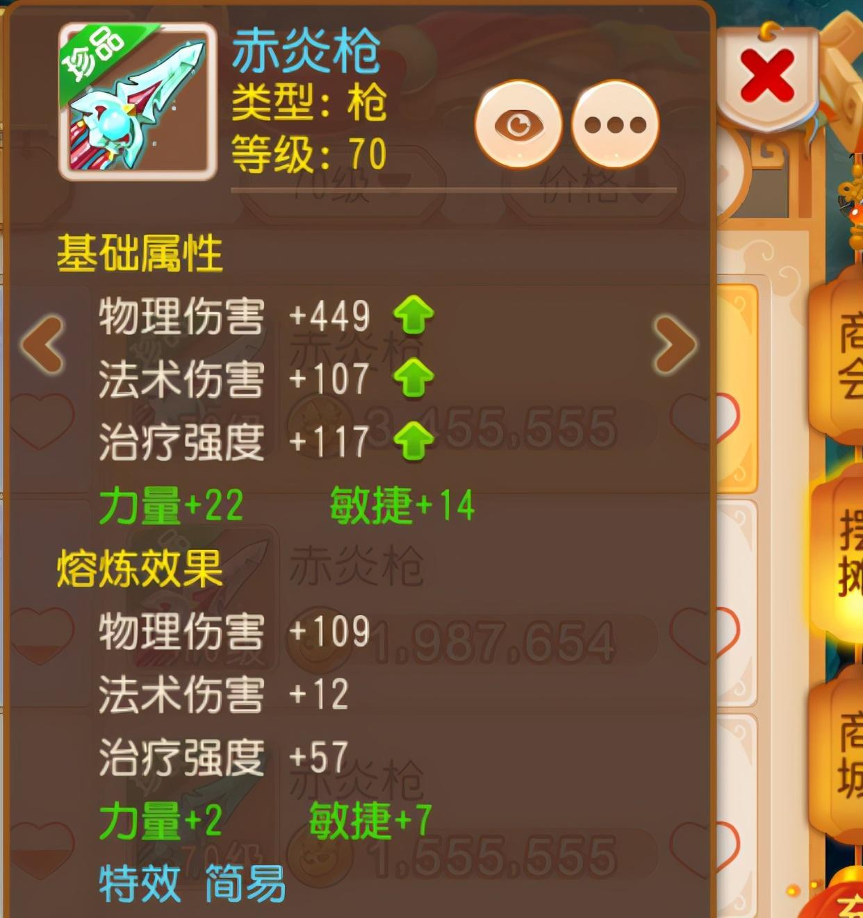 然后就是武器的绿字了,和衣服同理,至少得加力,预算充足的话是力敏双加或力耐双加。