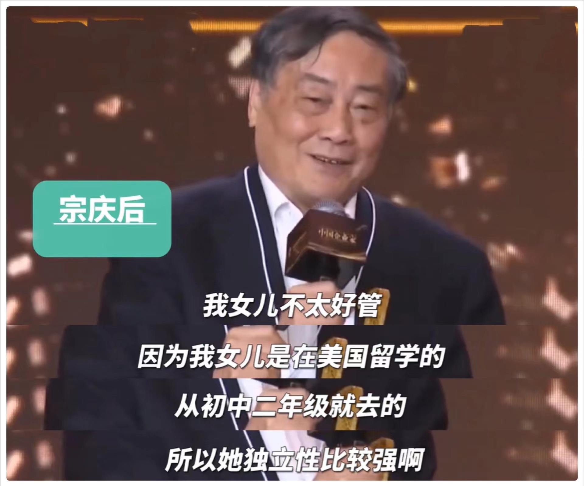 1982年1月15日,宗庆后生下独女宗馥莉,为了给女儿更好的生活,宗庆后和2名退休老师,拿着东借西凑的14万元,于1987年开始创业。