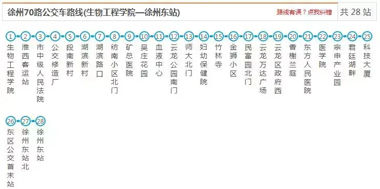 徐州70路公交车路线