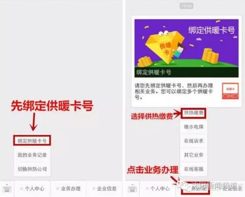 第二步:想要缴费需要先绑定供暖卡号,然后点击“业务办理”中的“供热缴费”,输入供暖卡号完成绑定。