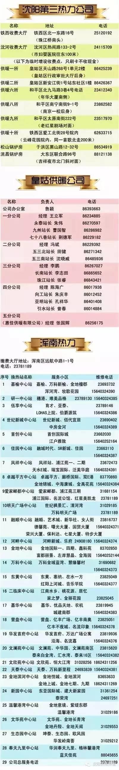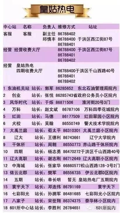 沈阳部分供暖公司客服电话