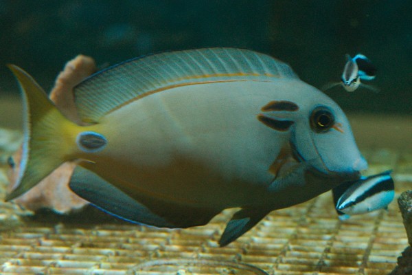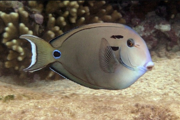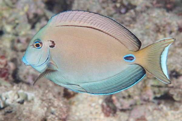 坦氏刺尾鱼和双斑栉齿刺尾鱼一般,浑身都相似椭圆形,尾巴则浮现月牙状,头颅则十分超过,嘴巴十分小,前端长有一排扁平的牙齿。坦氏刺尾鱼浑身都是浅棕色,个中最鲜亮的便是它的身材边际和尾巴上,尾巴边际泛着蓝色,在根部的核心局部长有蓝色的雀斑,中央浮现乌色,背鳍和胸鳍都浮现乌色,边际泛着蓝色,瞅起来便像是在身材上镶嵌了一个蓝色的圆圈。