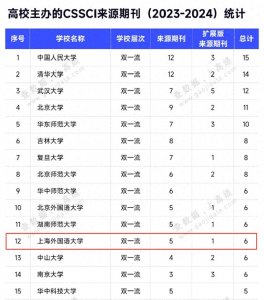 - 重磅!“影响力最大”榜单出炉,上海外国语大学位居全国第12名! 近日,CSSCI来源期刊(中文名称:《中文社会科学引文索引》)最新名单正式揭晓,该名单2年统计一次。C刊一般指...