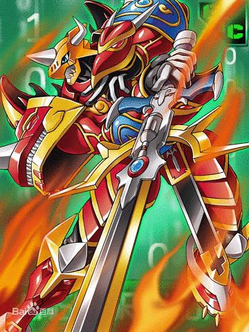 由战斗暴龙兽和钢铁加鲁鲁合体进化而成,设定也是皇家骑士的一员,战斗暴龙兽形的左手持有盾和剑,金属加鲁鲁兽形的右手则装备了大炮和导弹。背后的披风,在闪避敌人攻击时,或是飞行时会自动安装在背后。
