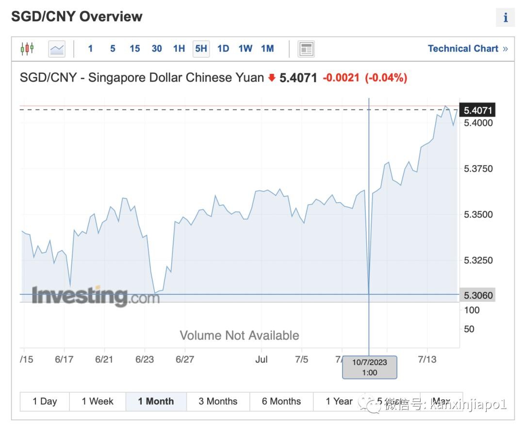 早在6月14日,新币兑人民币的已经靠5.34的汇率达到20年来新高,没想到在今天,汇率已经达到5.41!
