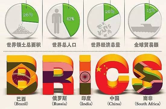 金砖国家由中国、巴西、俄罗斯、南非、印度5国组成。英文名称由五国的英语首字母组成,定为BRICS。