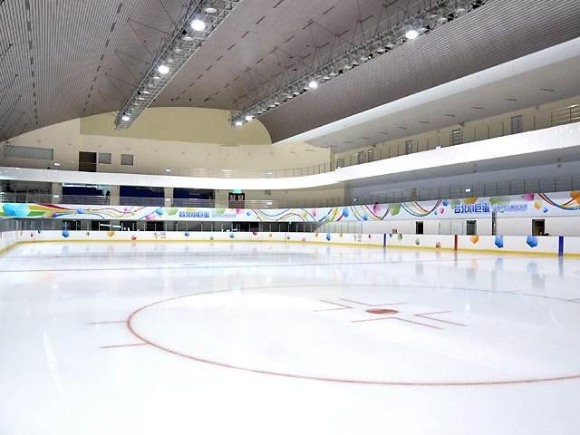 台北小巨蛋体育馆可以在短时间内摇身变成一个名副其实的“冰宫”,拥有中国台湾地区唯一符合国际标准的室内滑冰场,结冰场地面积为61m*30m,滑冰总人数可达400人,看台可容纳800个席位。可以举办冰球、竞速滑冰、花样滑冰和冰壶等冰上比赛,还可以为运动员和民众提供练习场所。
