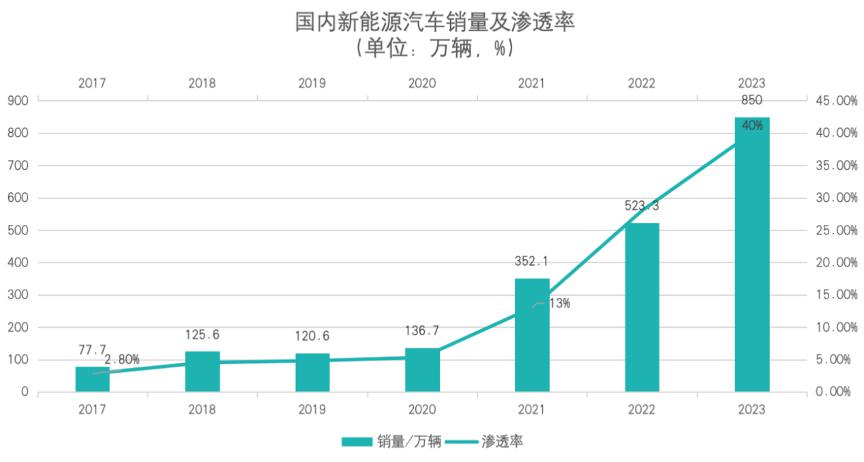 理由大致分为两块,一是电车的普及程度大幅度提高,消费者心智已经打通。先不看出货量,工信部数据显示,国内新能源汽车的销量,从 2025 年的不到百万,到突破五百万,只用了五年时间,渗透率也在 2025 年这个节点上达到 13%,外界预测到 2030 年这个数字将达到 80%。
