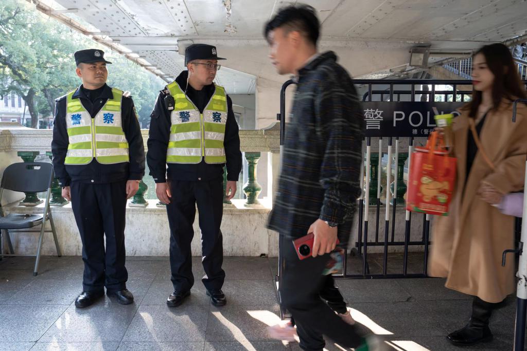 类似的话,荔湾区公安分局南源派出所民警万里鹏数不清说了多少次,嗓子都变得干哑。他的岗位在三街桥,紧挨着一座人行天桥,人流量从下午 2 点多开始慢慢增加。" 我们是第一道关,做初步分流,确认是酒店房客、食客、住户和预约群众就可以进去。" 面对面跟大家沟通,万里鹏坦言要特别注意尺度,既要执行安保规定,也要维护城市形象。" 有时候,处理情况要灵活、柔性。"