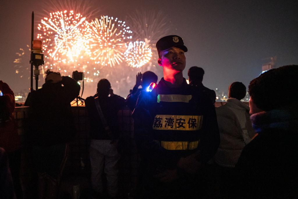 从六二三路、沿江西路一直延伸到人民路,全线约一公里,就已部署有 50 多名警力。期间,有未预约的市民向刘智锋表示很想观看烟花,他只好建议在沿江空旷地带等候," 虽然有遮挡,也能看到部分烟花。"12 年前,刘智锋是观众之一,尤其能理解这种迫切的心情。现在,刘智锋的角色和心态都发生了变化:" 现在我更多想到的是路面秩序和群众安全。"