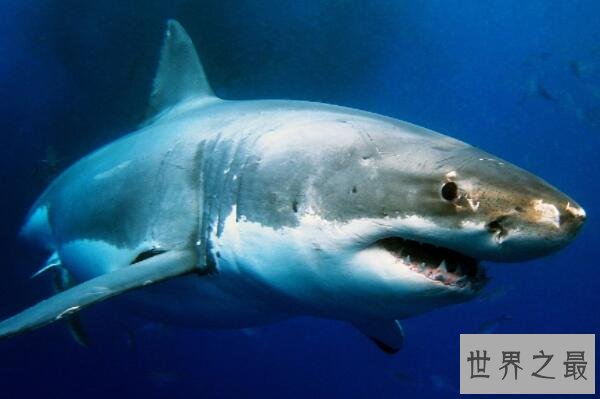 大白鲨又被称为噬人鲨,是一种身体呈粗壮的纺锤形的大型凶猛鲨鱼,通常会以平均每小时3.2千米的速度生存在表层下至水深1280米处,而这种凶猛的鲨鱼除了会捕食各类海洋生物外,优势还会袭击船只或攻击潜水的人类。
