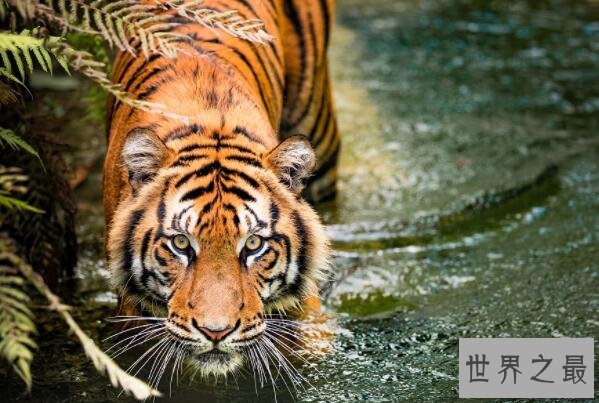 老虎是有着浅黄至棕黄色皮毛、并附有满身黑色横纹的大型猫科动物,而这种典型的山地林栖动物通常是黄昏活动,白天大多是在潜伏休息,并且夜间的活动范围较大,但因近些年人类的过度猎杀和野外栖息地的不断减少,目前已经成为珍稀濒危物种。